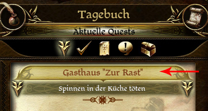 In den Journal Text unten trage ich den Text ein, der bei Annahme des Quests im Journalbuch erscheinen soll: „Du sollst für Edwina die Spinnen in der Küche töten, damit sie dir etwas zu essen kochen kann.“