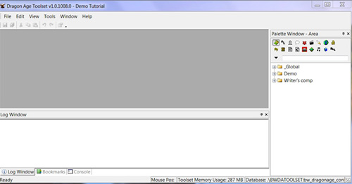 - Im Startmenü –> Alle Programme –> Dragon Age Origins befindet sich die Startdatei des Toolsets „Dragon Age Toolset„. Diese wird als Administrator ausgeführt (Rechtsklick, Eigenschaften, Kompatibilität, Haken vor „Ausführen als Administrator“ setzen, ok). Nun Doppelklick auf die Programmdatei zum Starten. Nach etwas längerer(!) Wartezeit öffnet sich das Toolset: